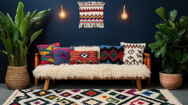 Contoh: Kombinasikan karpet Maroko bermotif geometris dengan selimut rajut warna earth tone dan bantal linen bertekstur. Pilih warna yang senada, seperti cokelat muda, oranye terracotta, dan krem agar tetap harmonis.